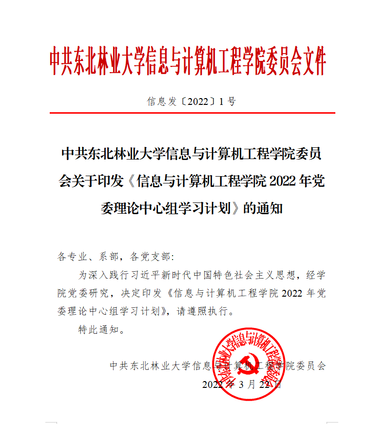 中共必威西汉姆联信息与计算机工程学院委员会关于印发《信息与计算机工程学院2022年党委理论中心组学习计划》的通知