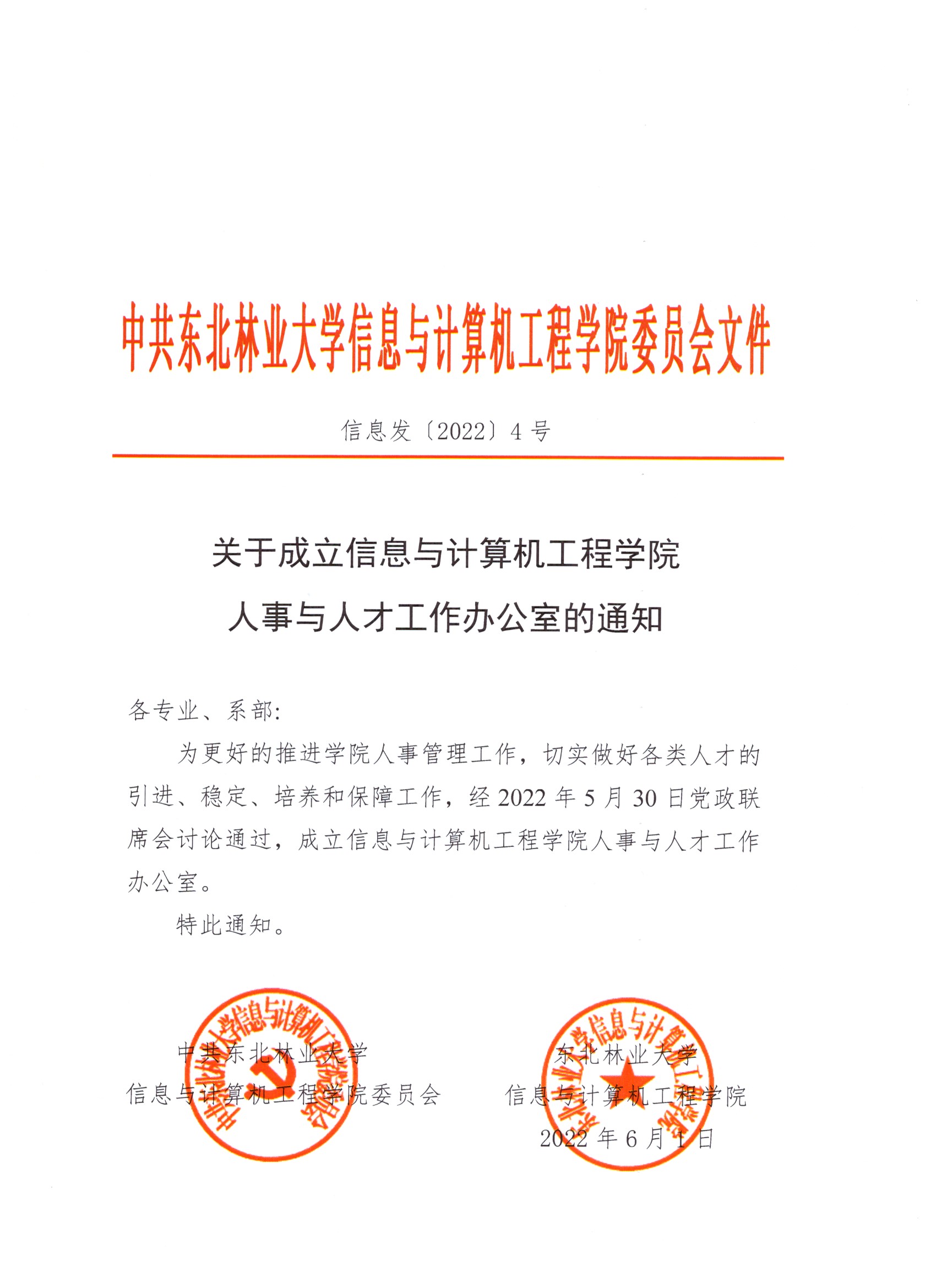 关于成立信息与计算机工程学院人事与人才工作办公室的通知