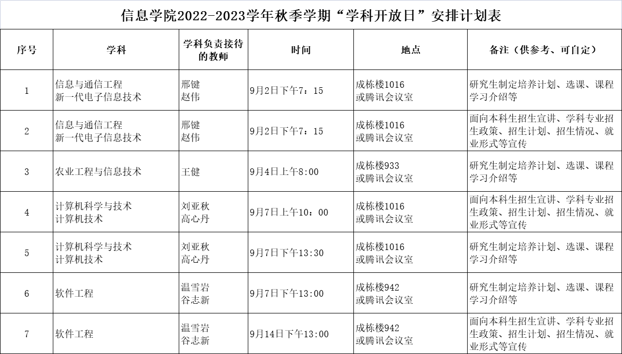 信息与计算机工程学院“学科开放日”安排计划: