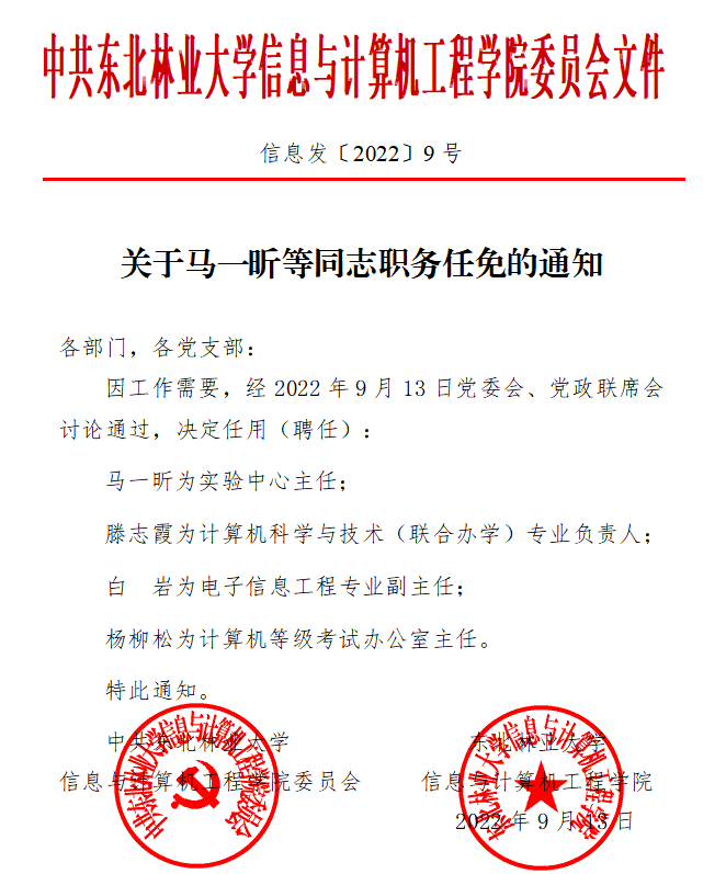 关于马一昕等同志职务任免的通知