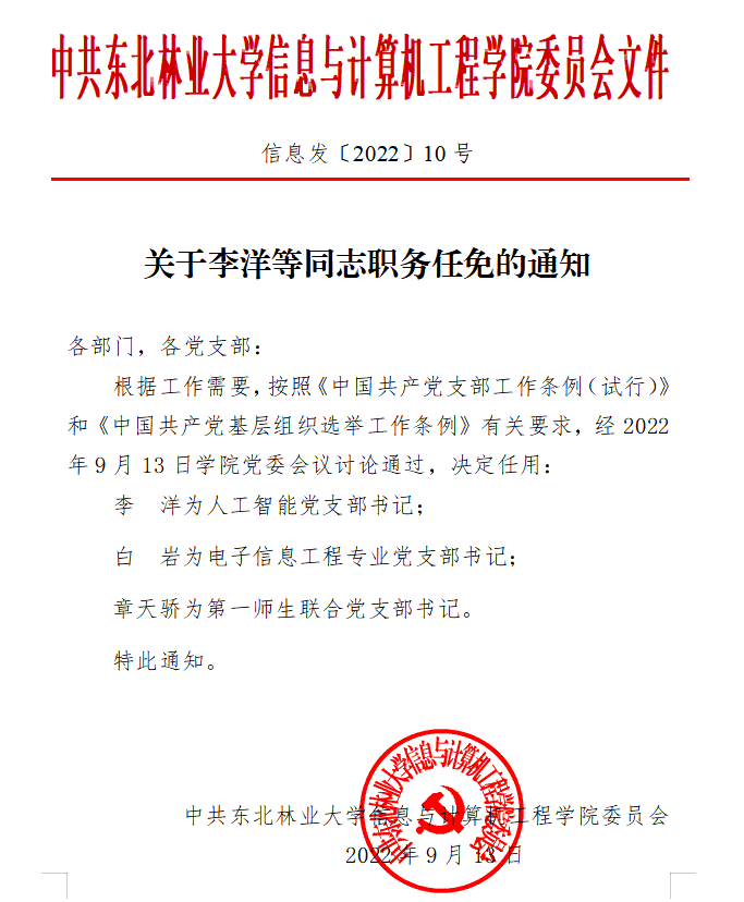 关于李洋等同志职务任免的通知