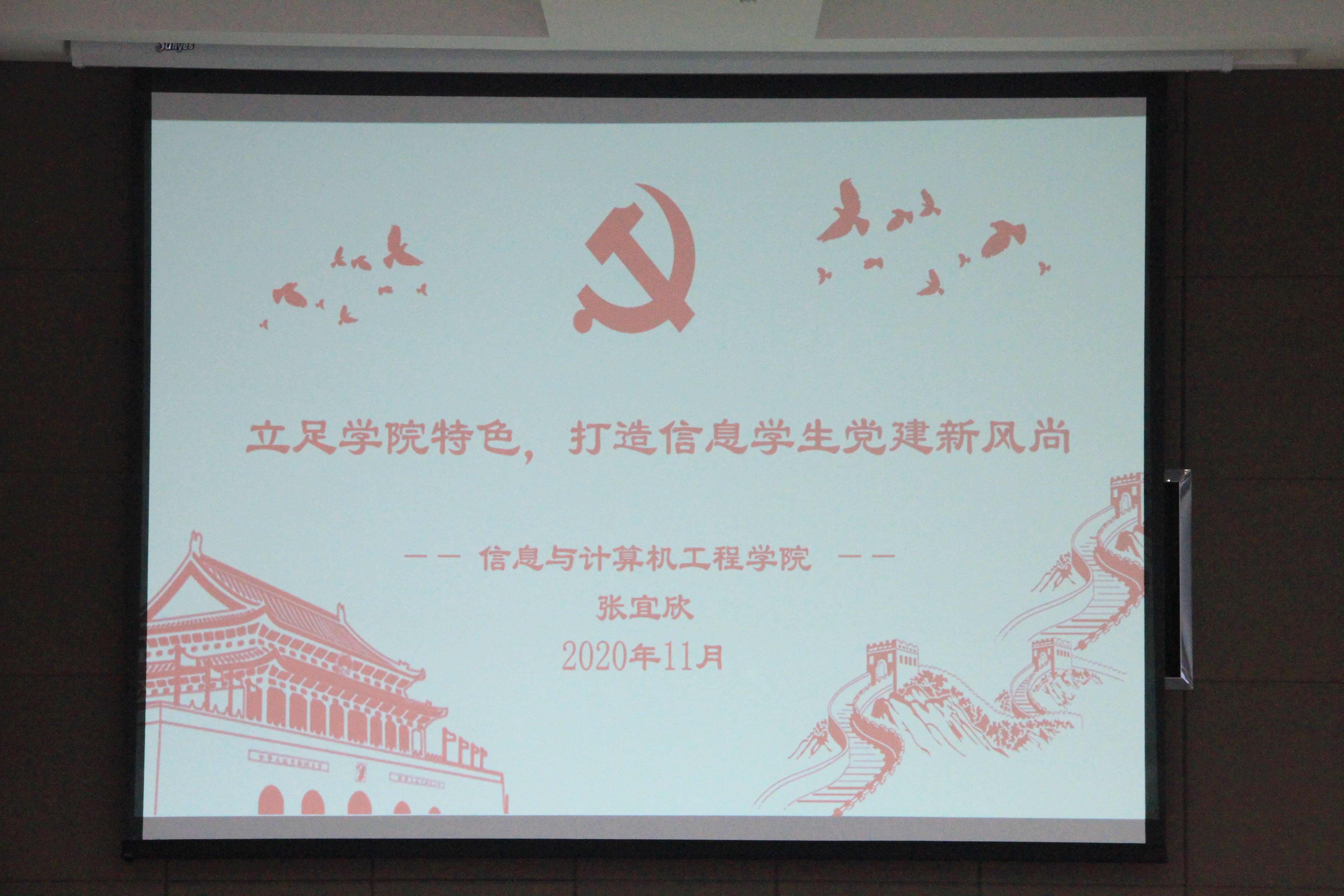 为了更好地发展学院党建工作,使新入职的辅导员尽快上手党建工作,信息学院于11月11日在成栋楼1014会议室举办了题为“立足学院特色,打造信息学生党建新风尚”的辅导员沙龙。本次沙龙主讲人为信息学院2019级电信专业辅导员张宜欣,学院全体辅导员老师参加了本次沙龙。
