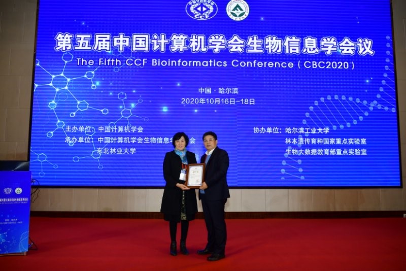 大会邀请美国弗吉尼亚大学张爱东教授、复旦大学周水庚教授、哈尔滨工业大学王亚东教授、哈尔滨医科大学李霞教授、中山大学戴道清教授、沙特阿卜杜拉国王科技大学高欣副教授、华中农业大学副校长严建兵教授分别就癌症预测与元学习、因果推断与致病基因检测、生物医学大数据挖掘和精准医学、面向疾病的数据分析集成策略、面向精准医疗的基因组学分析方法、大数据驱动的玉米数量遗传学研究等问题做了特邀报告。同时,西安电子科技大学高琳教授、同济大学黄德双教授、北京建筑大学郭茂祖教授、中国科学院计算所张法教授代表CCF生物信息学专委会分别向做大会特邀报告的专家颁发感谢证书。