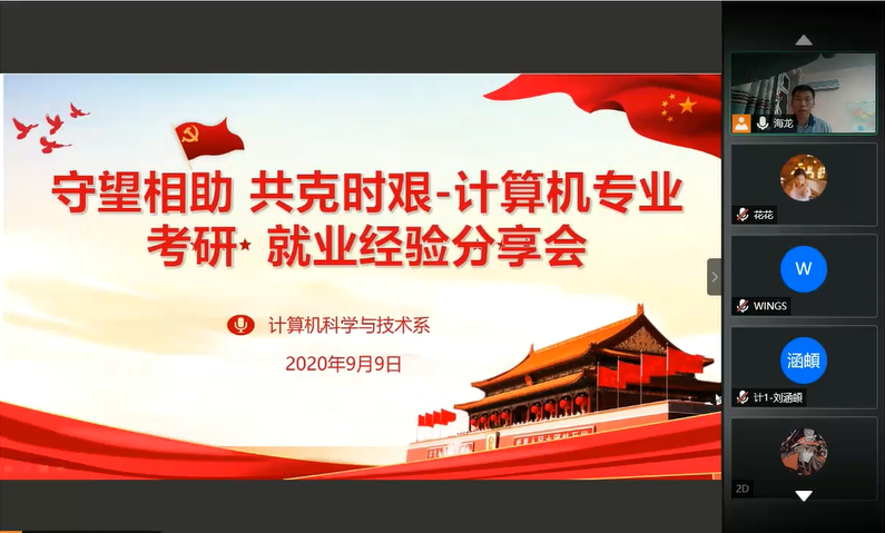 9月9日,信息与计算机工程学院计算机科学与技术系党支部“守望相助,共克时艰——计算机科学与技术专业助力考研就业交流会”在“云端”顺利召开。本次交流会特邀六名优秀校友为信息学子答疑解惑,计算机科学与技术专业教师全体出席。交流会由计算机科学与技术系党支部书记孙海龙主持。