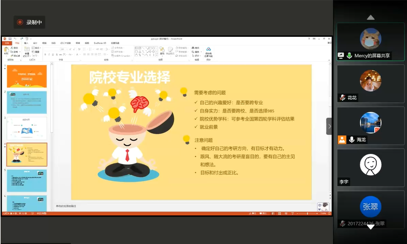 会议最后,计算机科学与技术专业教师以及六位校友为学生进行了在线答疑。