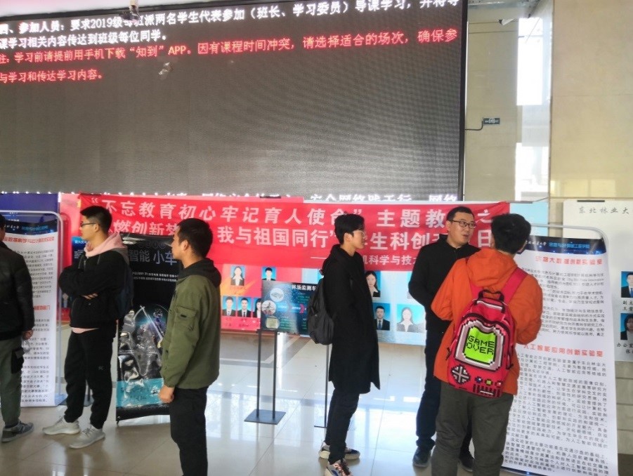 10月30日中午,信息学院计算机科学与技术党支部在丹青楼一楼大厅举办了《不忘教育初心 牢记育人使命主题教育之“点燃创新梦想、我与祖国同行”本科生科创开放日》主题党日活动。活动由党支部书记孙海龙主持,负责创新实验室的部分党员教师及实验室的学生共同参加。