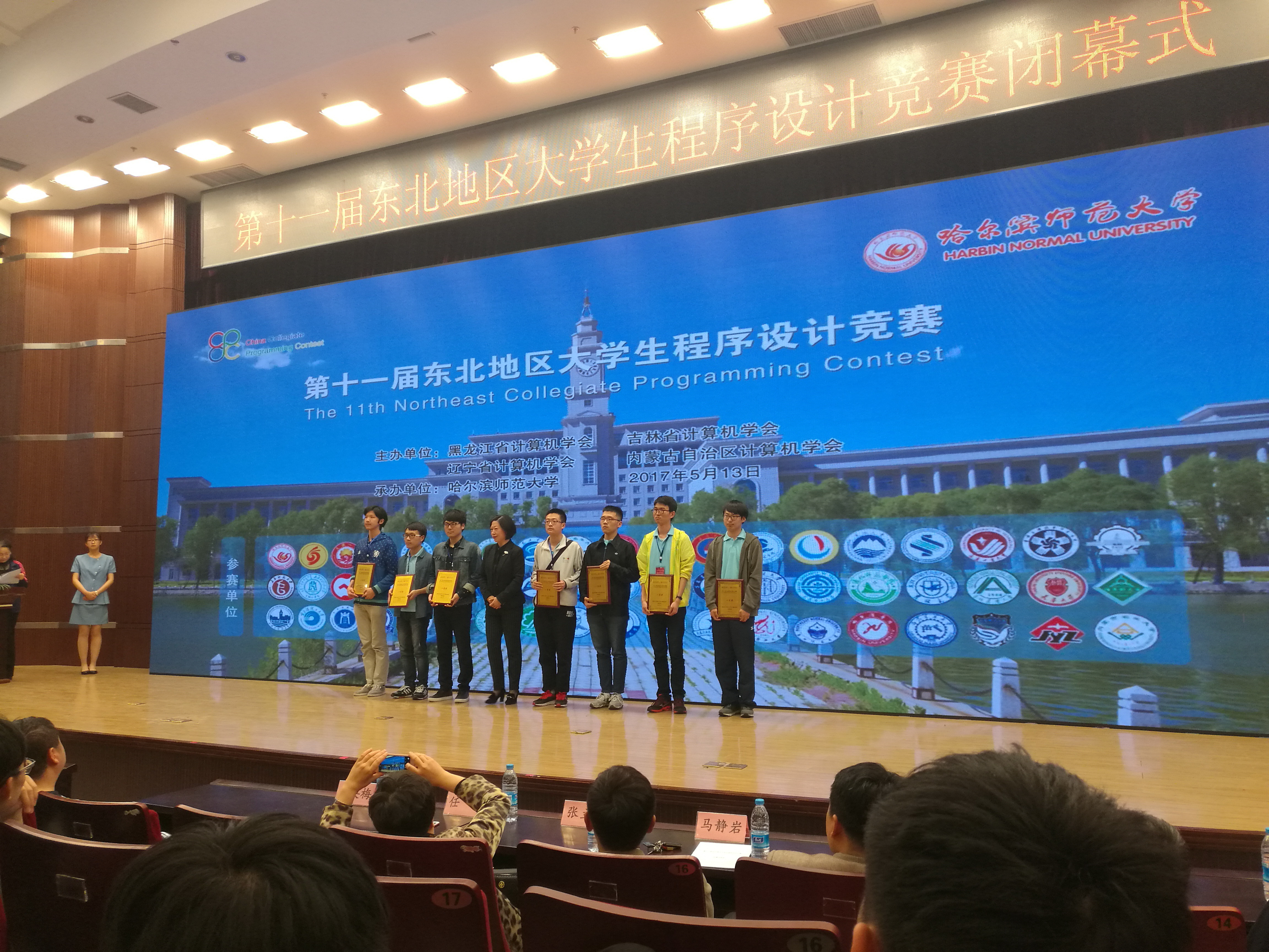 5月11日至14日,由黑龙江省计算机学会与省教育厅、东北三省一区计算机学会联合主办的第十一届东北地区大学生程序设计竞赛在哈尔滨师范大学隆重举行,我校代表队获得一等奖1个、二等奖2个、三等奖3个,保持并延续了在东北地区荣获一等奖的好成绩。