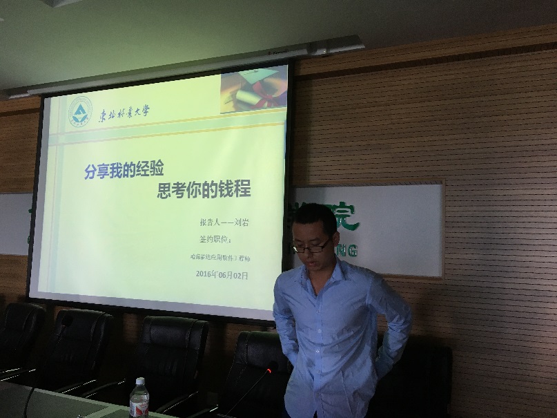 2016年6月2日下午2时,信息学院研究生优秀毕业生就业经验分享会在成栋楼1016会议室成功举办。本次活动邀请了优秀毕业生代表向东、张雪、隋政文和刘岩分享他们的就业经验,参会的有14级、15级全体研究生和部分16级已被录取的研究生。