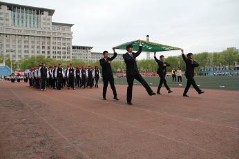 开幕式上,各班级方队迈着整齐的步伐,喊着嘹亮的口号,接受主席台各位领导和老师的检阅。而后,全体同学来到主席台下,庄雯培老师表示了对全体运动员的问候,运动员代表2013级学生张一帆对大会做出了比赛承诺,裁判代表2012级学生杜雪对运动员做出了公平公正裁判承诺。随后,运动会比赛正式开始。