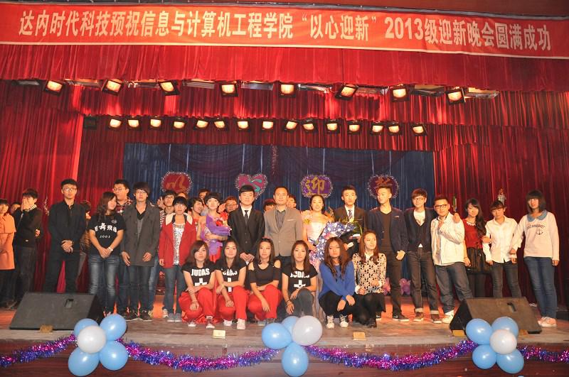 2013年10月20日,由信息学院学生会主办的“信息与计算机工程学院2013级‘以心迎新’迎新晚会”在小礼堂隆重举行。本场晚会不仅得到了达内科技的大力赞助,也得到了各兄弟学院的部分老师和学生干部的大力支持。在学生会文艺部的精心准备和全体学生干部的共同配合下,晚会气氛热烈、环节紧凑,为全体大一新生奉献了一台异彩纷呈的晚会。