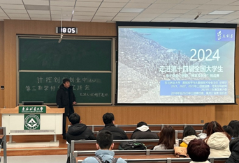 纪明宇老师向同学们讲解了有关第十四届全国大学生电子商务“创新、创意及创业”挑战赛的内容。
