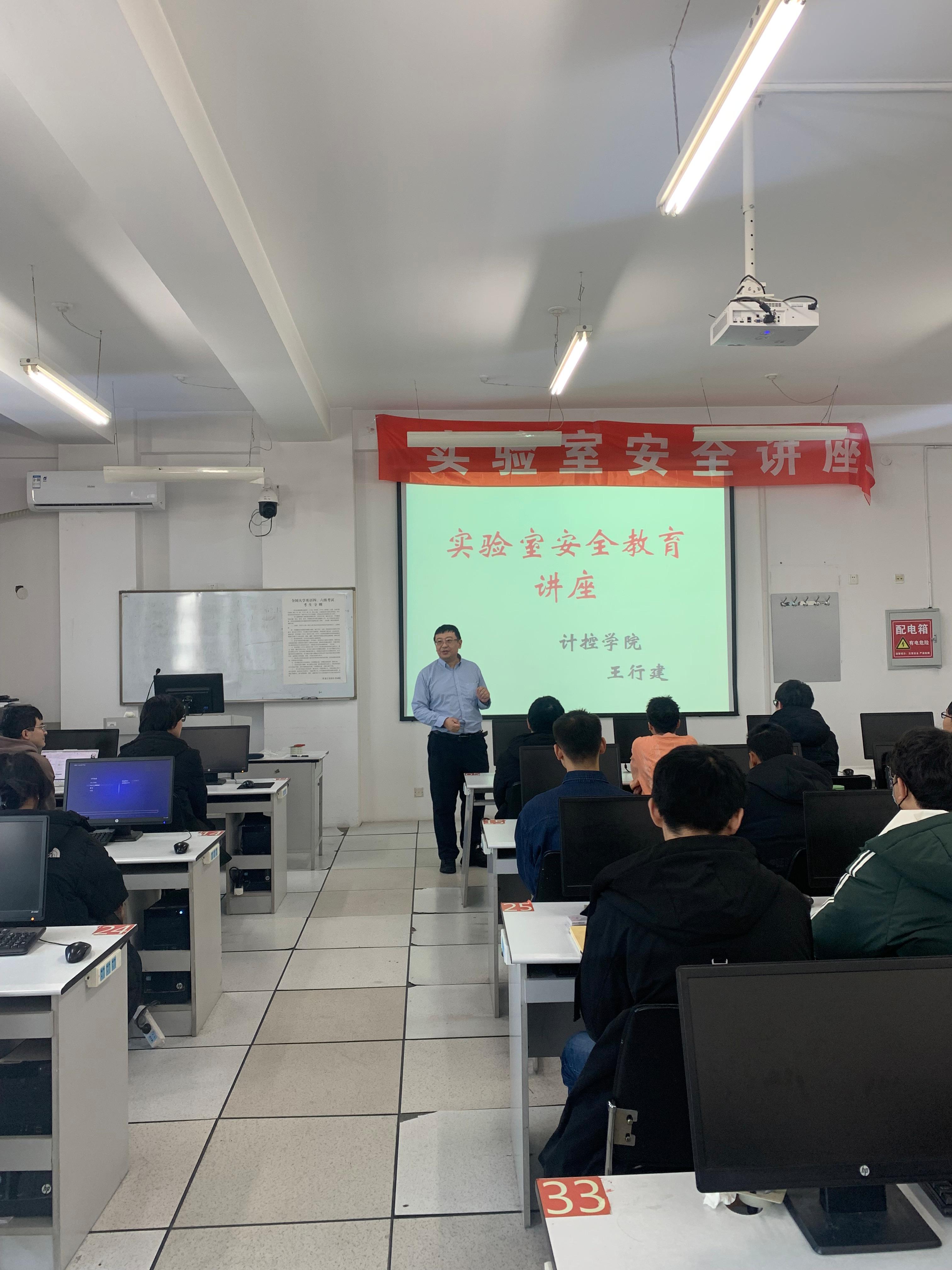 为了进一步加强我院实验室安全教育、强化师生安全意识、规范实验意识、增强应对实验室突发安全事故的能力,确保实验、实践教学的顺利进行,实验中心在丹青楼905和908实验室,开展了“实验室安全讲座”活动,讲座由实验中心王行建老师主讲,采用了线上和线下相结合的方式进行,2020级计算机科学与技术专业全体同学参加了此次讲座活动。