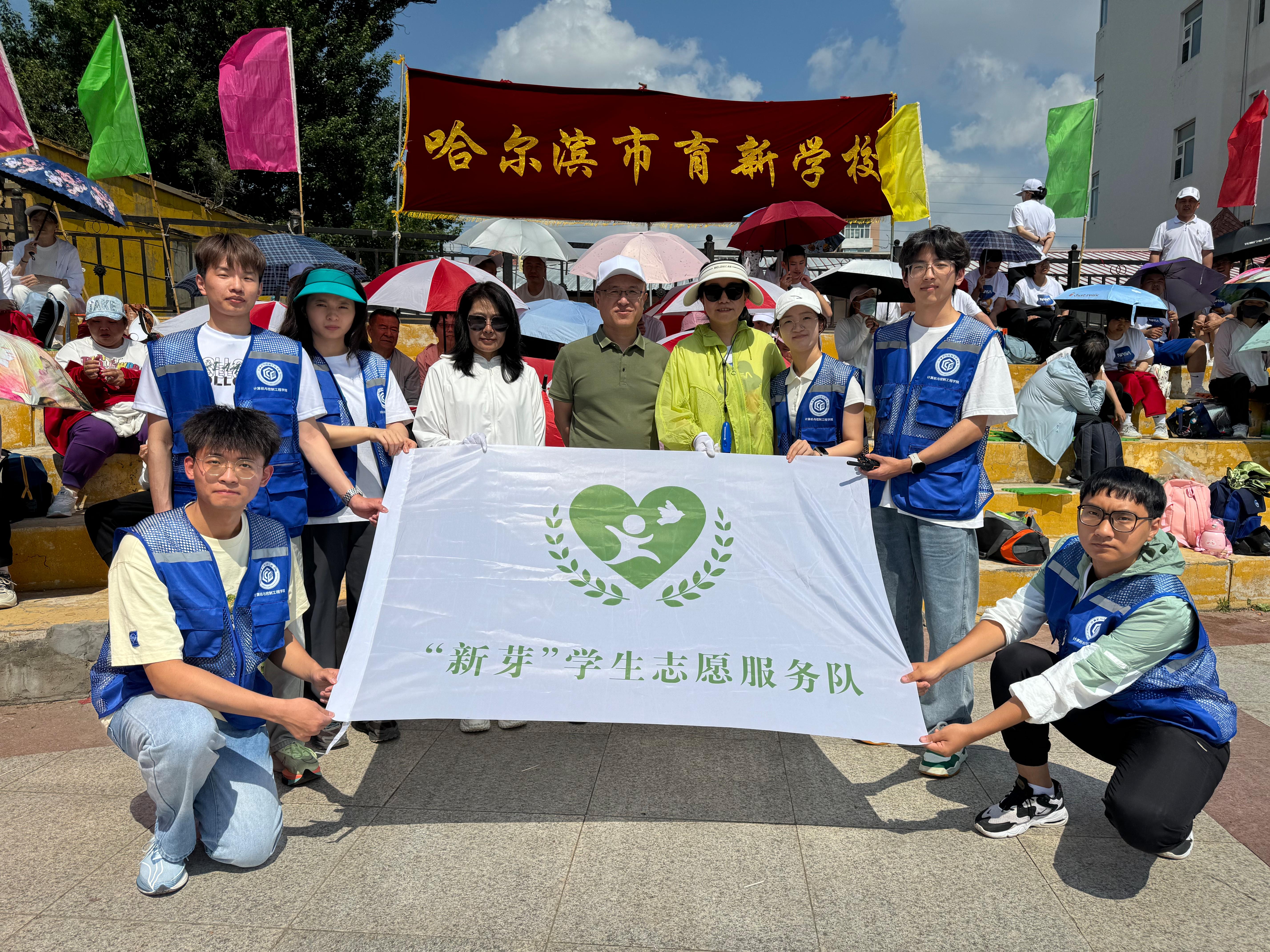 在接到哈尔滨市育新学校的邀请后,学生志愿者们毫不犹豫地踏上了这场温馨的志愿服务之旅。他们早早地来到了运动会现场,为了确保运动会的顺利进行,他们全身心地投入到了前期的准备工作中。