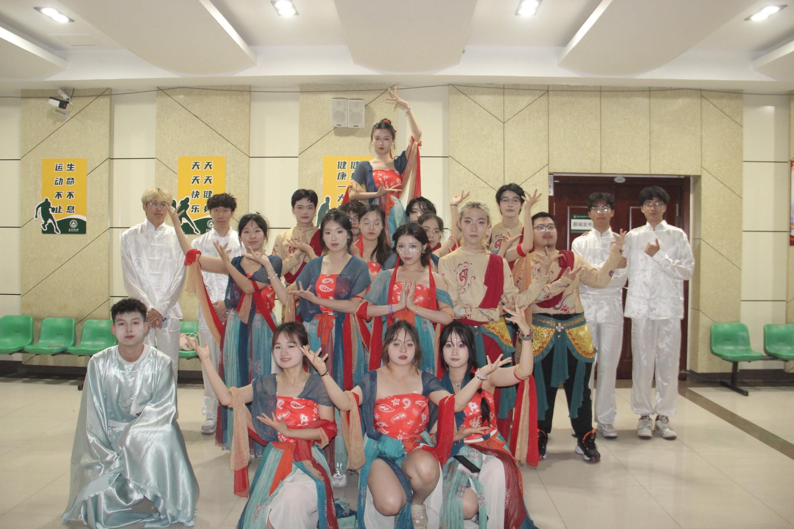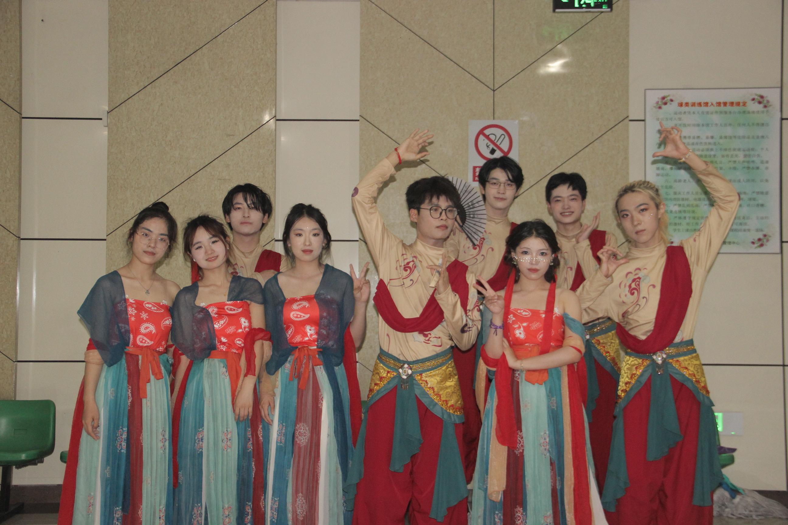 “角声吹彻梅花,胡云遥接秦霞。白雁西风紫塞,皂雕落日黄沙。”敦煌之美从古至今深入人心。翠笛,红袖,衣袂飘飞:袖带,白纱,千年壮美。每一哥脚步,都是无数次的磨练,每一拍的变换,都是璀璨文化的展现。选曲,编舞,排练;失误,进步,完美表演。每一位成员都倾尽全力,牺牲自己的休息时间,刻苦努力,为观众呈现出一场视听盛宴。