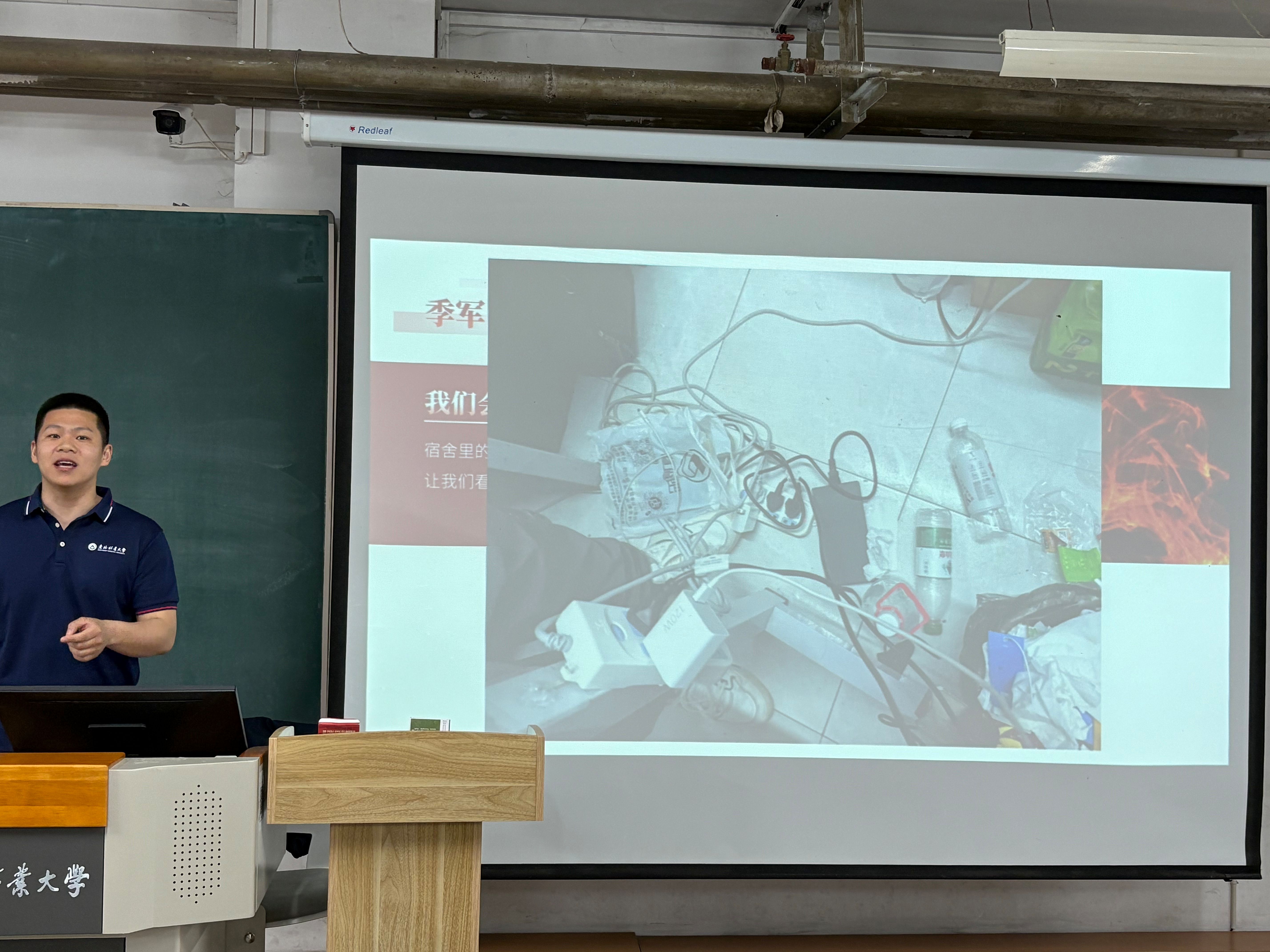 董恺弟强调,私拉乱接电线、错误放置插线排以及在宿舍使用大功率违规电器等行为都存在极大安全隐患。他通过具体的数据和事故案例,让同学们意识到这些看似平常的行为可能引发严重后果。随后,他详细讲解了电器的正确使用方法以及注意事项,如将插线排固定在墙上、定期维护充电器等。