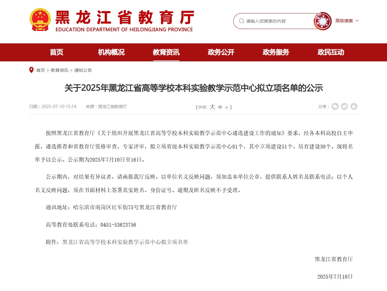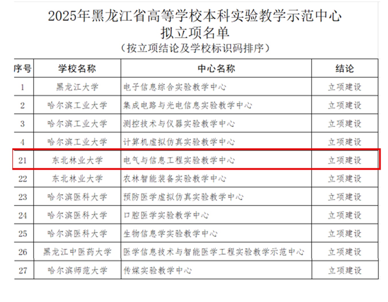 近日,黑龙江省教育厅公布2025年本科实验教学示范中心立项名单,学院“电气与信息工程实验教学中心”成功获批省级实验教学示范中心。在申报过程中,学院领导高度重视,组建专项工作小组,全员协作深挖实验教学特色,严格对标申报标准,确保材料科学规范,为成功获批奠定坚实基础。