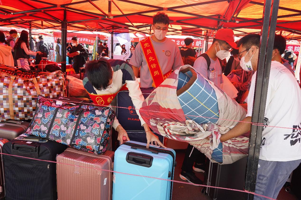 金秋九月,恰是匆匆开学季。为了充分发挥党员的先锋模范作用,展现支部党员风采,确保2022年迎新工作的顺利开展,9月2日,本科生第五、第六党支部在行李提取处和9A路口迎新地点处设立党员先锋岗。迎新志愿工作采取轮班制,工作内容分为迎新问询、行李递送、后勤支持、新生引导等。志愿者们忙碌的身影,成为校园中亮丽的风景线。