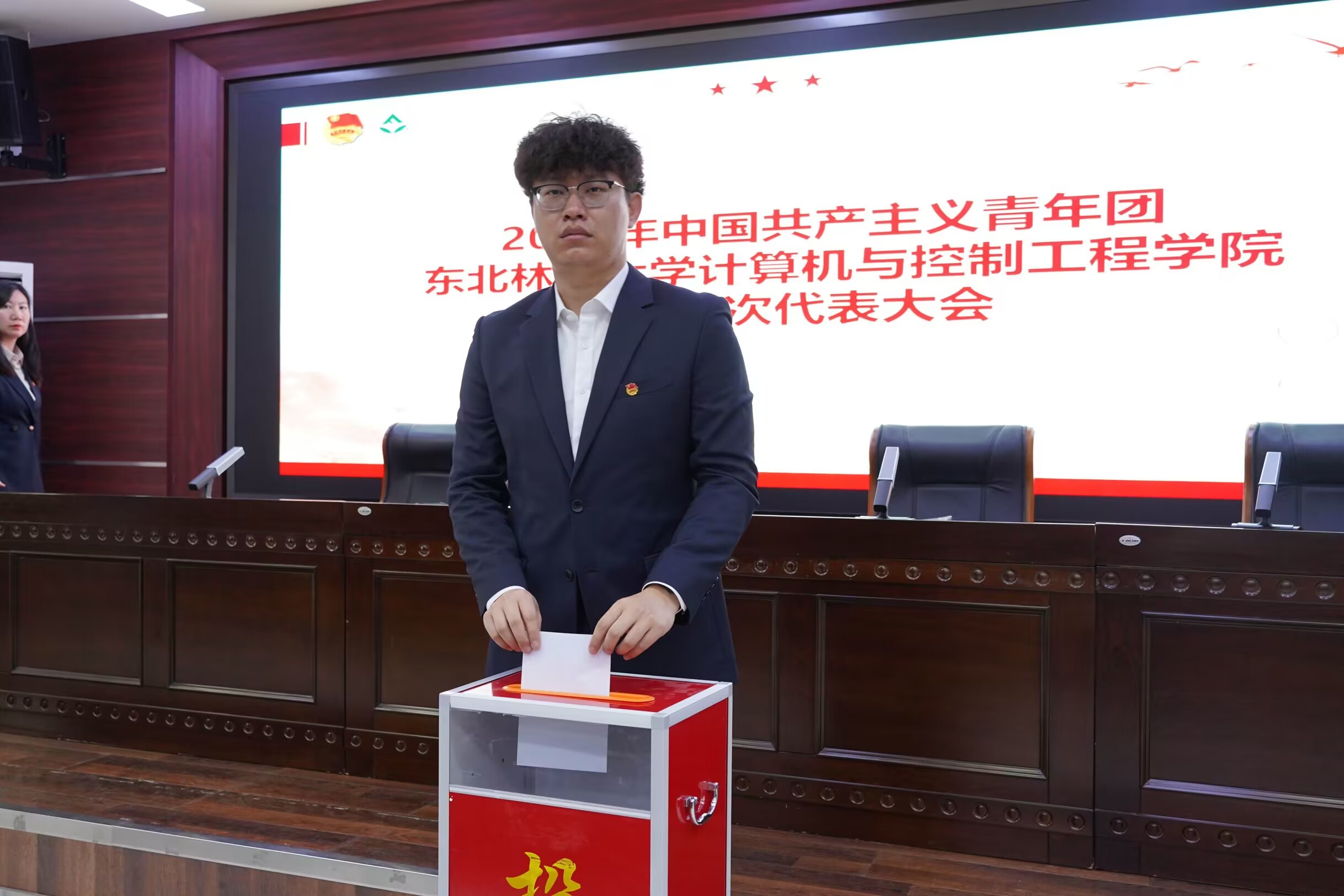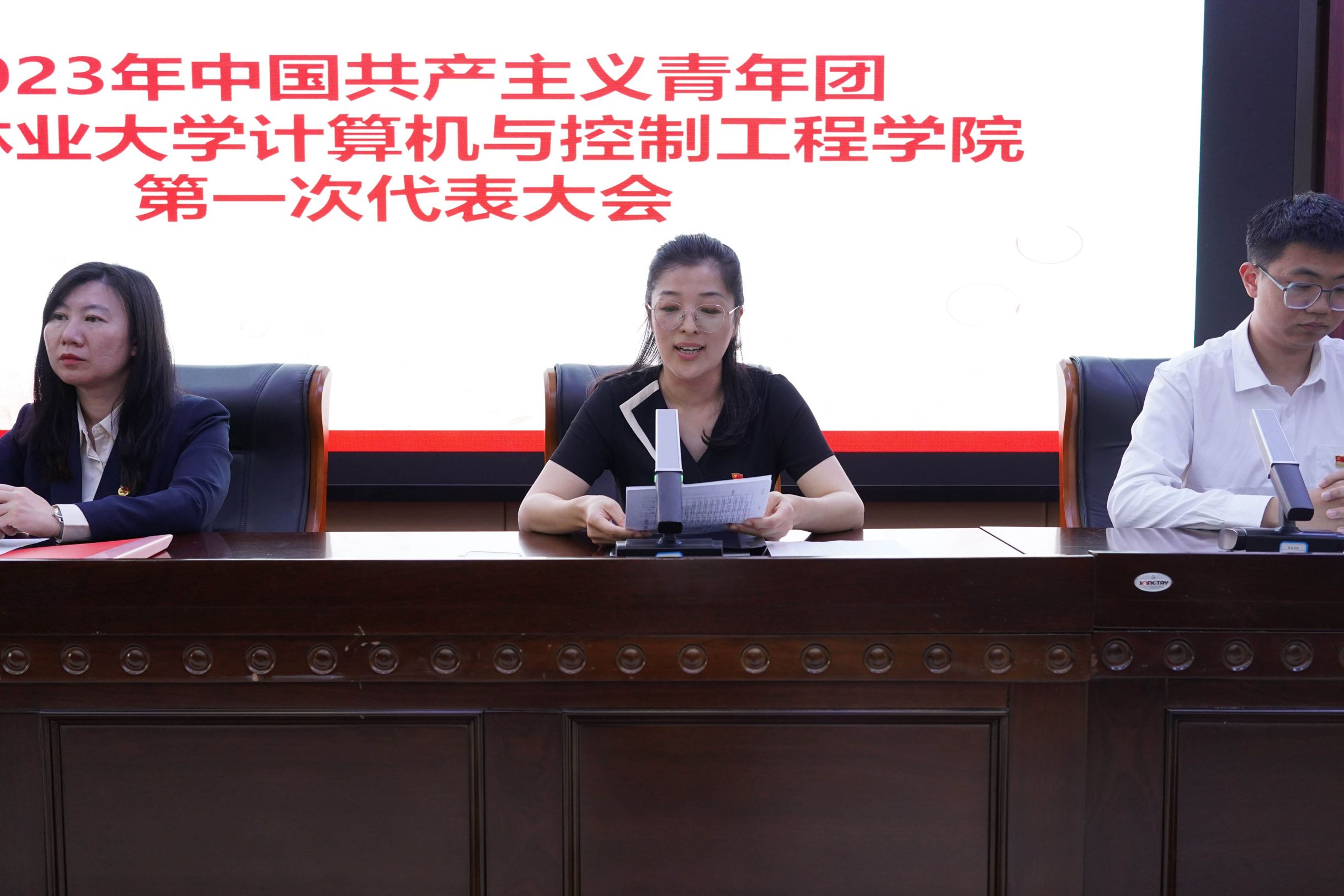 最后,参会人员集体合唱《光荣啊,中国共青团》,在激昂的歌声中,大会落下帷幕。新征程上,计控学院团委将不忘初心,砥砺前行,为学校、学院建设增砖添瓦,为建设社会主义现代化强国的目标不懈奋斗,让青春在全面建设社会主义现代化国家的火热实践中绽放绚丽之花!