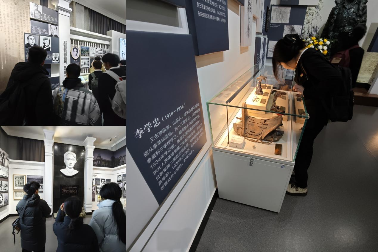 东北烈士纪念馆馆藏文物13850万余件,展览全面反映抗日战争和解放战争时期,为民族独立、人民解放牺牲在东北以及在东北有过重要活动和作出突出贡献的英烈的感人事迹。在东北烈士纪念馆中,讲解员老师结合馆藏文物讲授“移动党课”,通过一幅幅历史照片、一件件革命文物,师生们深入了解了东北地区在中国革命历程中的峥嵘岁月。
