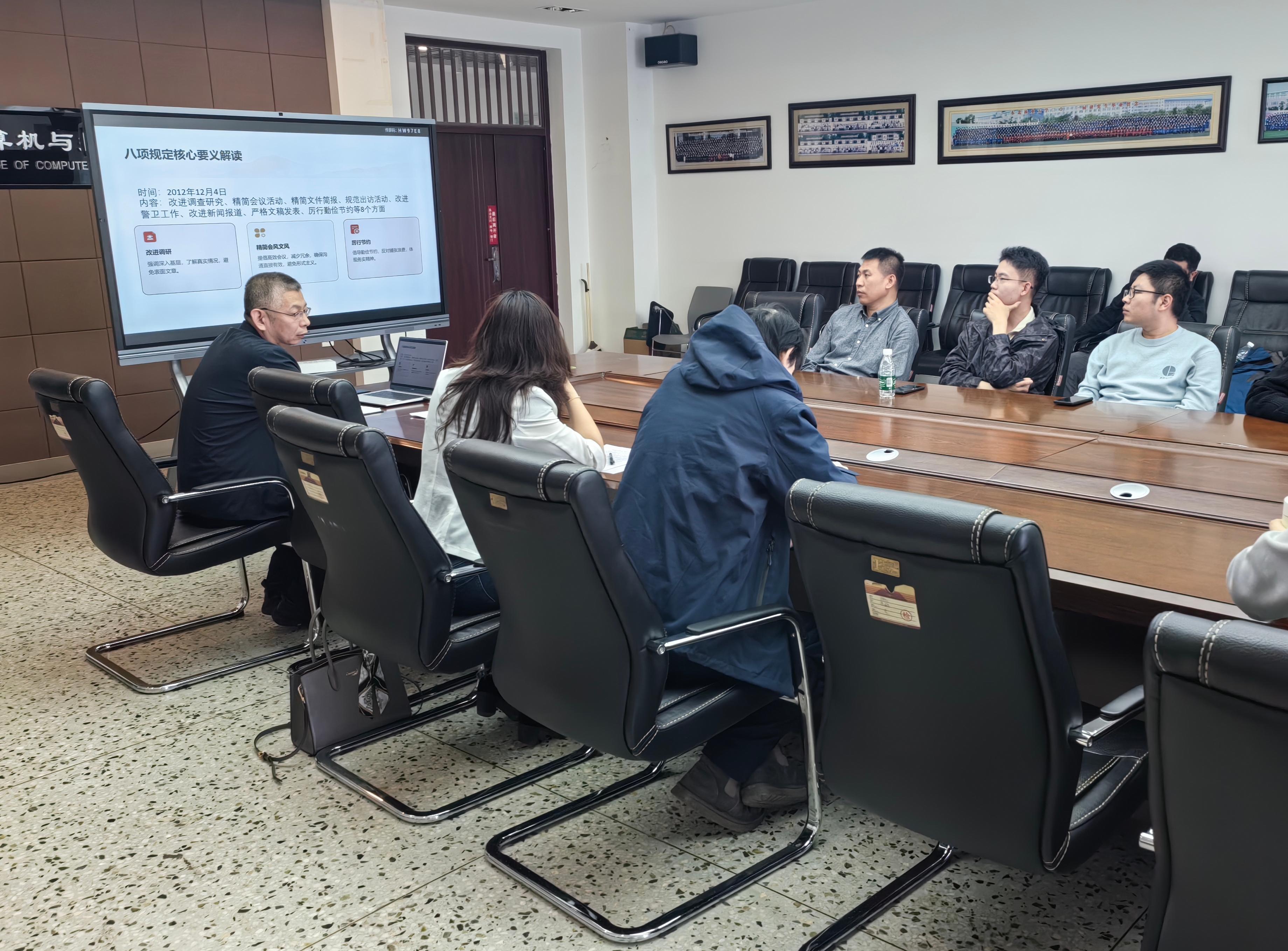 本次会议既是一次深刻的思想洗礼,也是一次务实的行动动员,让全体党员对中央八项规定精神有了更深刻的理解和认识。未来,计算机教工党支部将以中央八项规定精神为指引,持续深化作风建设,推动计算机专业高质量发展,为学院“全国党建工作标杆院系”培育创建工作贡献力量。