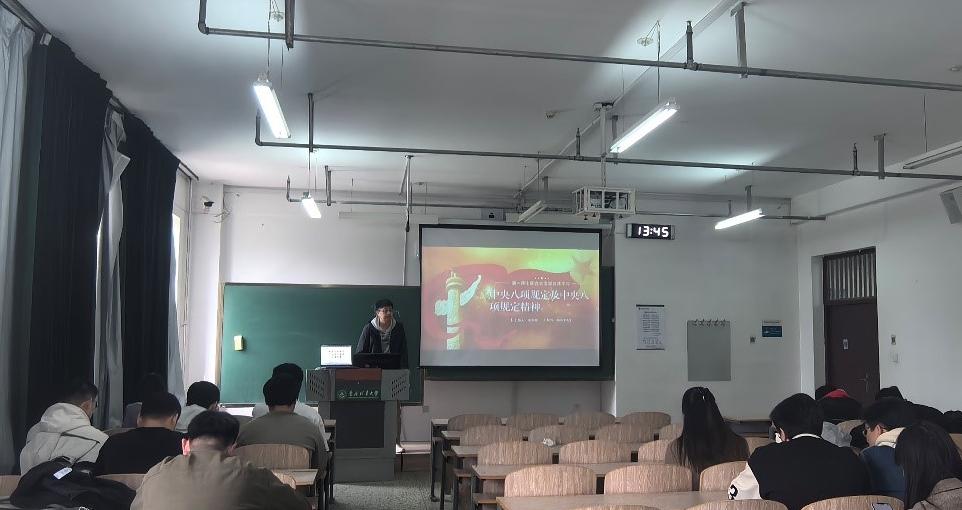 会上,党支部书记章天骄带领全体党员回顾了中央八项规定出台的背景与2012年以来党的作风建设进程,深入解读了中央八项规定的核心内容与中央八项规定精神的深层内涵。他对“中央八项规定不等于中央八项规定精神”“适用主体不同”“处理依据不同”等关键点进行了详细剖析,帮助党员准确把握内涵、厘清认知界限,切实增强理论素养与纪律意识。随后,章天骄讲解了违规吃喝、公车私用、津贴乱发等典型违规案例,引导大家从思想上查摆问题、从细节中反思行为。他强调,学生党员更应在日常学习与生活中践行中央八项规定精神,把廉洁自律作为基本操守,把实事求是作为学术底线,自觉抵制学术造假、形式主义等不良风气,做到学习上脚踏实地、科研中求真务实。