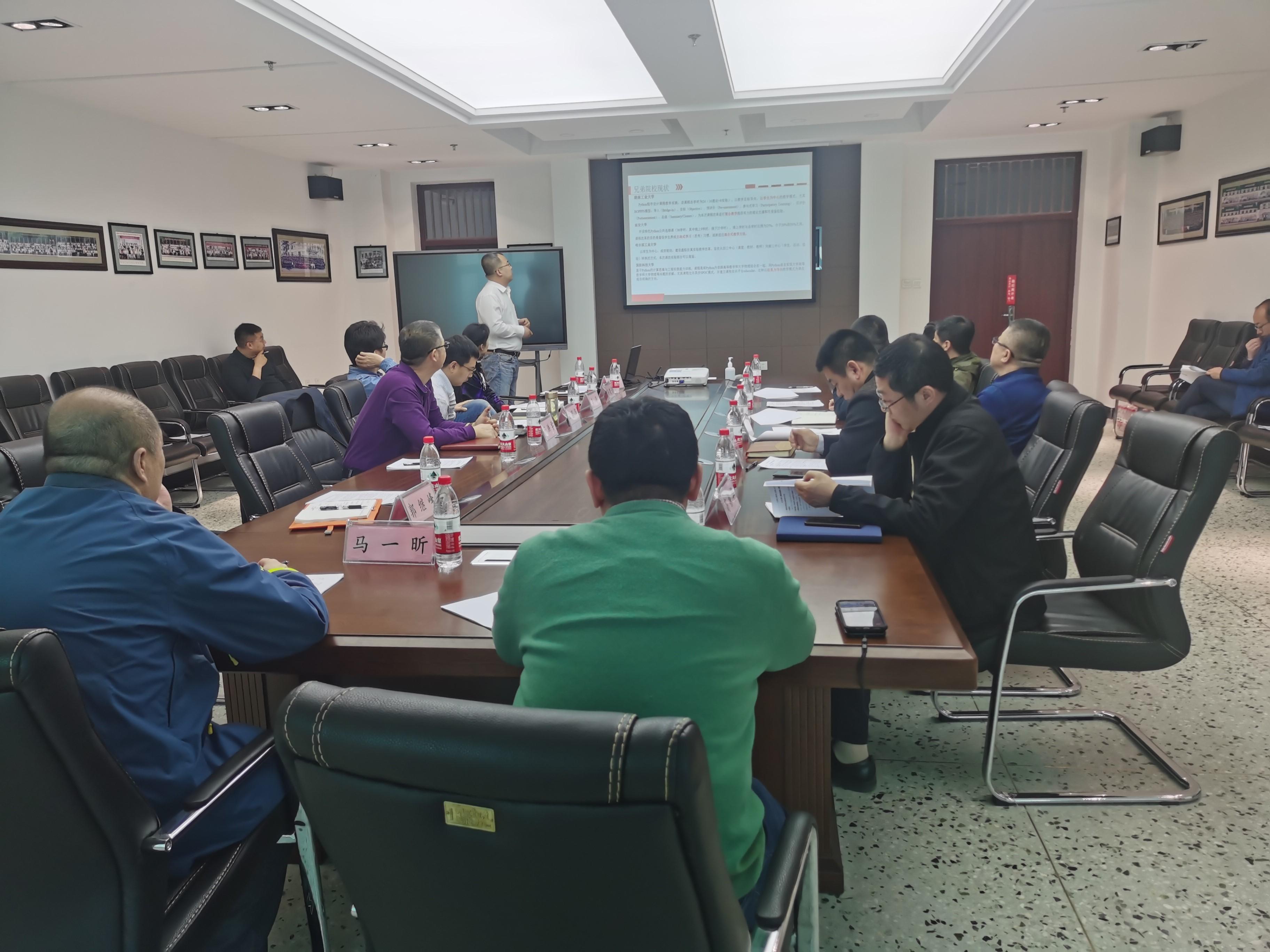 信息学院计算机基础教育与实验中心副主任彭涛老师以图文并茂的形式对此次改革的背景、意义、目标、具体方案意以及预期效果向大家详细进行介绍。与会专家基于本专业需求对《大学计算机基础》课程改革方案和修改方向逐个点评并提出自己见解。材料学院从Python与智能制造的紧密结合角度;交通学院从网约车、定制化等交通新业态布局角度;生命学院从学生思维转变与衔接角度;文法学院从文科生应更注重计算机工具掌握的角度;经济管理学院从课程名称与内容应匹配的角度;外语学院从语料库入门的角度;林学院从双一流学科的个性化需求的角度分别进行了发言和点评,并提出诸多有益的意见建议。
