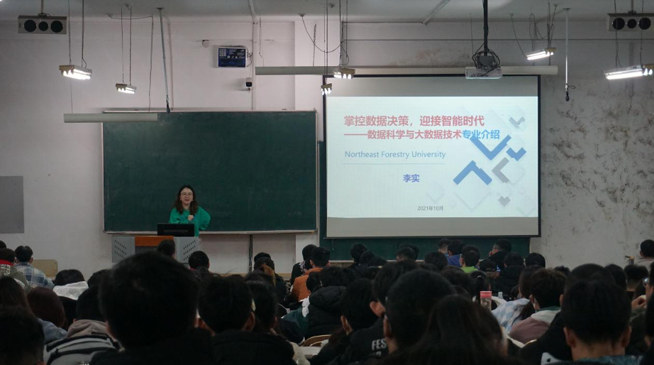 紧接着,数据科学与大数据技术专业主任、副教授,李实老师,从近年来大数据的高速发展与广泛应用作为主题,以大数据专业的就业岗位为方向,多层次,全面的讲解了大数据专业的前景,同时还提出大数据专业具有挑战性。