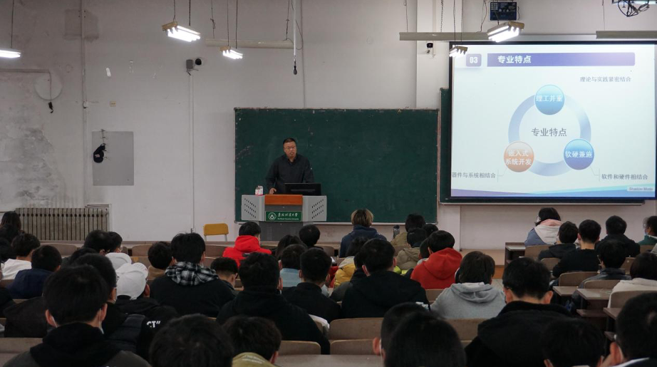 最后,计算机科学与技术专业专业主任、副教授,董本志老师,以大学生先成人后成才为根本,为同学们讲解无论选择什么专业,自身的努力程度,与对未来的把握才是根本,只有不断进取,才能在未来的人才市场占有一席之地。