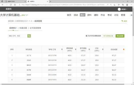 图12 平时成绩表