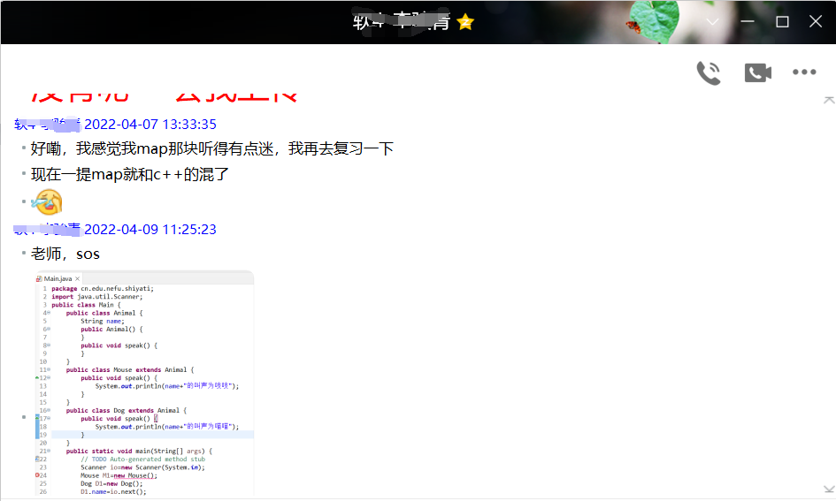 (5)利用腾讯会议组织在线答疑,利用屏幕分享功能让学生进行操作演示、ppt展示演讲分享、面对面解答相关问题。利用课程QQ群等交流手段,进行随时答疑。通过答疑交流,了解学生对知识点理解和应用编程情况。