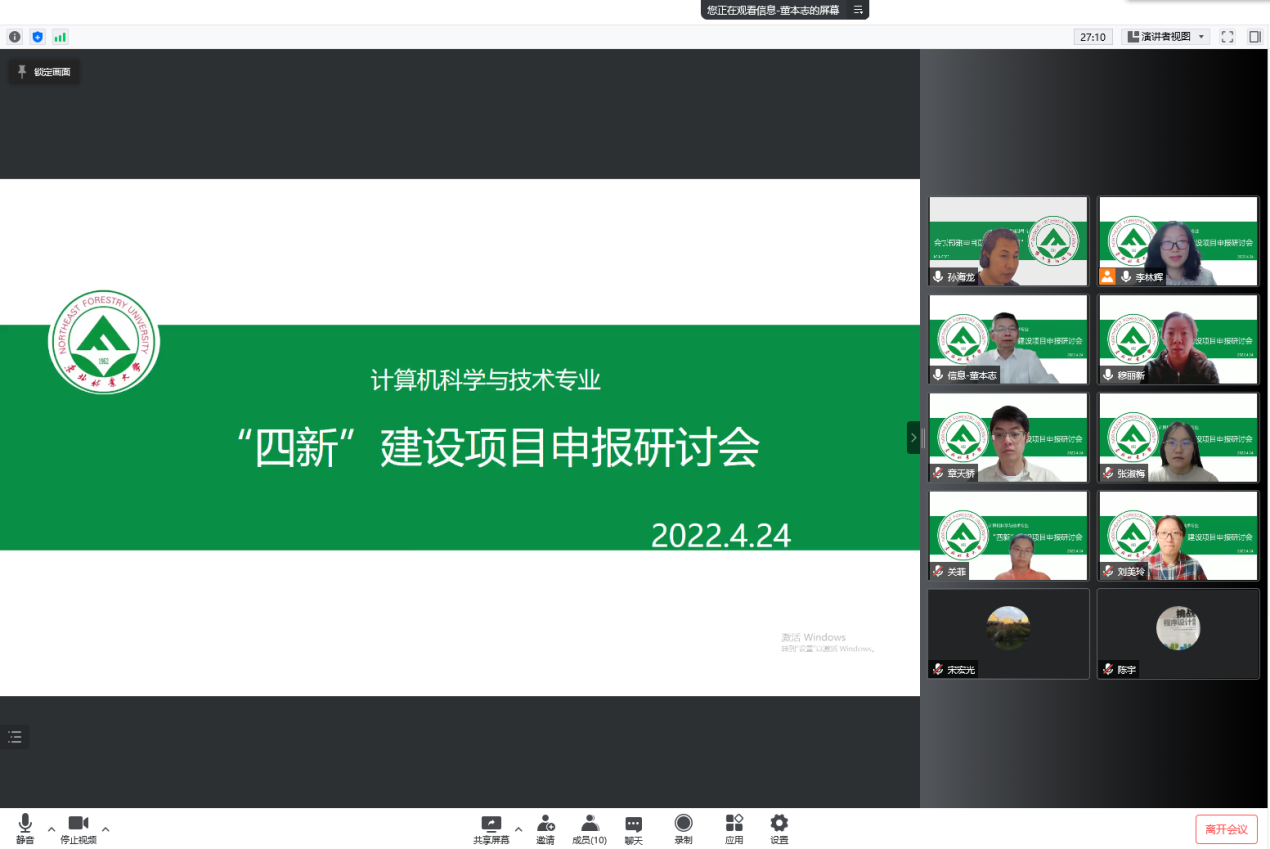 为推进计算机科学与技术专业课程和考试方法改革,打破专业核心课程之间的壁垒,建成知识一体化平台,2022年4月24日晚19时,由计算机科学与技术专业主任董本志、副主任李林辉、副主任孙海龙牵头,召开了核心课程教学改革研讨会暨“四新”建设项目申报研讨会。程序设计基础课程组负责人宋宏光老师、离散数学课程组负责人陈宇老师及核心课程算法设计与分析的授课教师刘美玲老师和穆丽新老师参加会议,同时邀请近三年新进教师关菲、章天骄、张淑梅老师观摩会议。