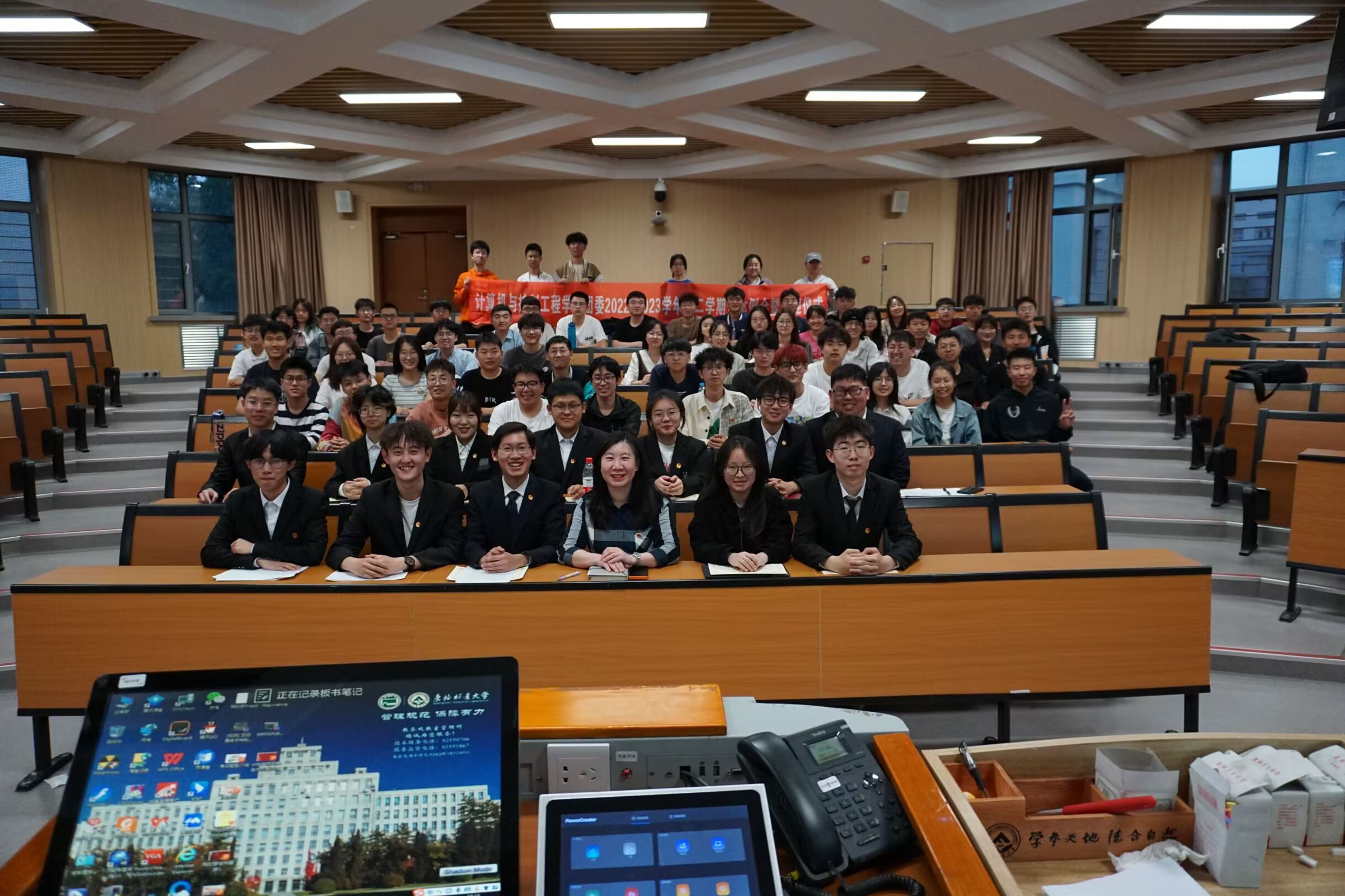 首先,由团委书记张音老师宣布新任学生干部名单,并简单介绍了双班制规则,让新加入的部员对团委学生干部体系有了透彻的理解。随后学生干部集体亮相,并由张音老师颁发聘书。