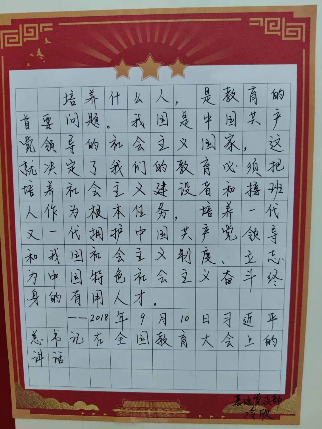 最终,共有35名师生分获一、二、三等奖,余下选手获得纪念奖。此次硬笔书法大赛成功举办弘扬了中国文化精神,营造了浓厚的校园文化氛围,让师生感受到了习近平总书记极富个人魅力的语言风格,简短的语句引经据典、生动传神。