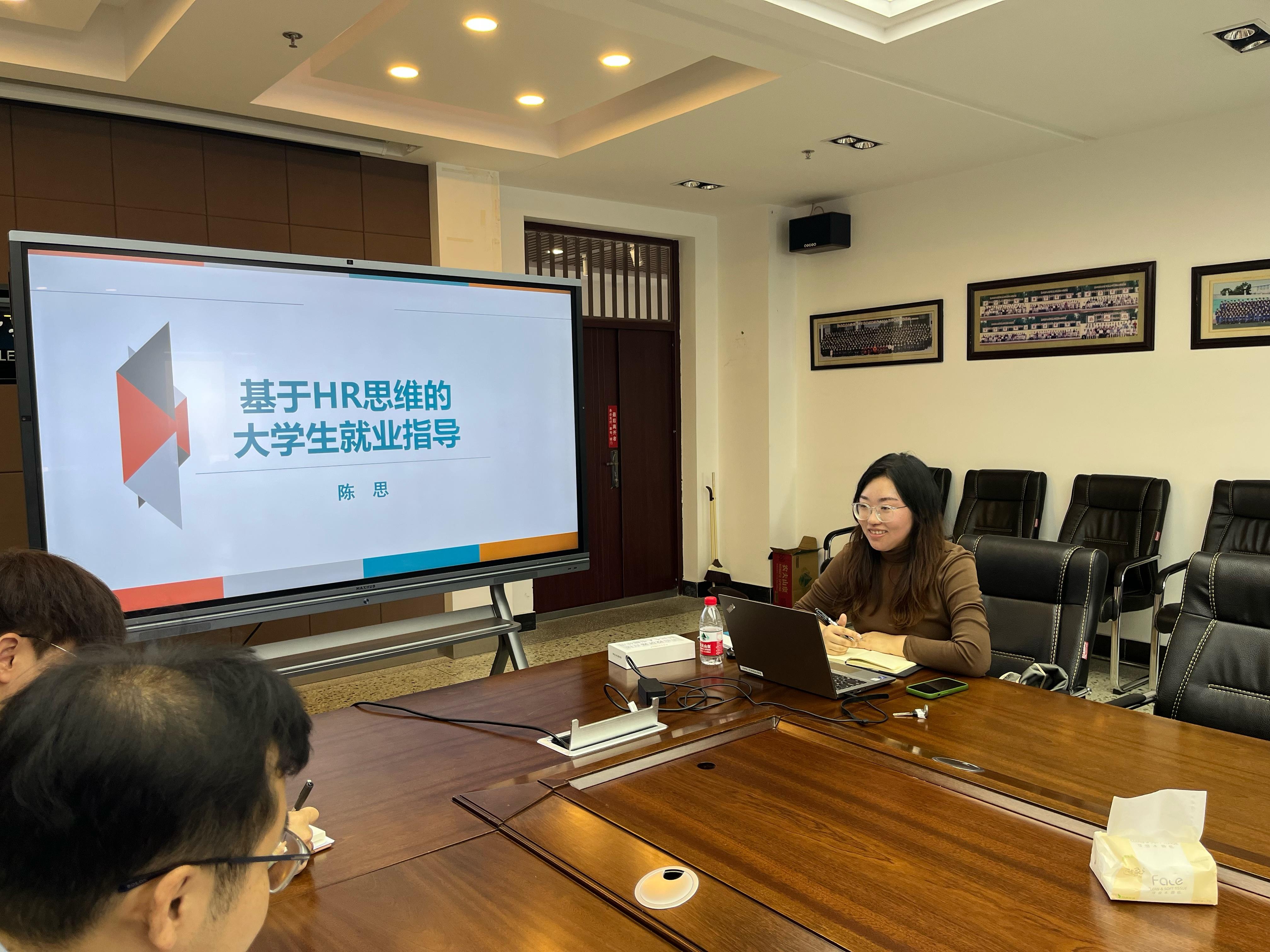 会上,陈思以“基于HR思维的大学生就业指导”为主题,围绕着“求职的概念和理论”“运用技巧获得工作”“团体辅导活动设计”三个方面展开分享。首先,她介绍了现代求职的相关理论,并指出求职者应基于企业用人需求通过梳理过往经历来证明自己的岗位胜任力。其次,她讲述了如何分析招聘岗位以及通过人际、传媒、机构等多种渠道获得招聘信息。最后,她分享了如何通过设计团体辅导活动帮助学生通过简历筛选、无领导小组讨论、模拟面试等环节树立HR思维,提升自己的就业能力。